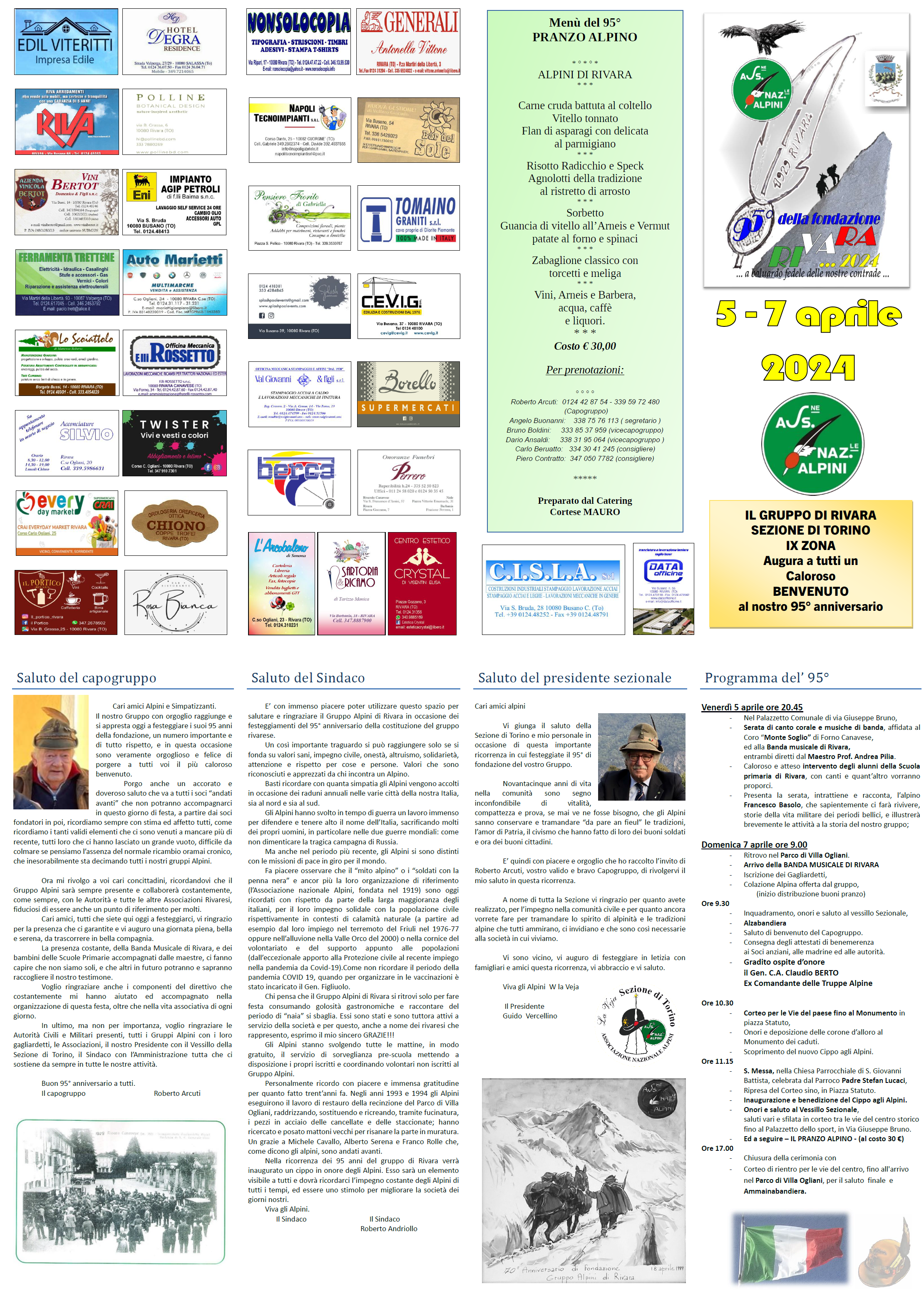 Domenica 7 Aprile 2024, il Gruppo ALPINI di Rivara festeggerà il 95° Anniversario della sua fondazione.
