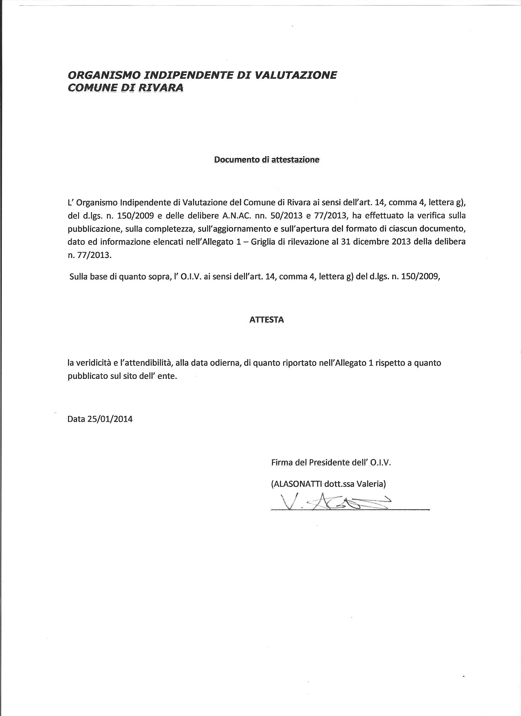 Allegato 1 - Griglia di rilevazione - 31.12.2013