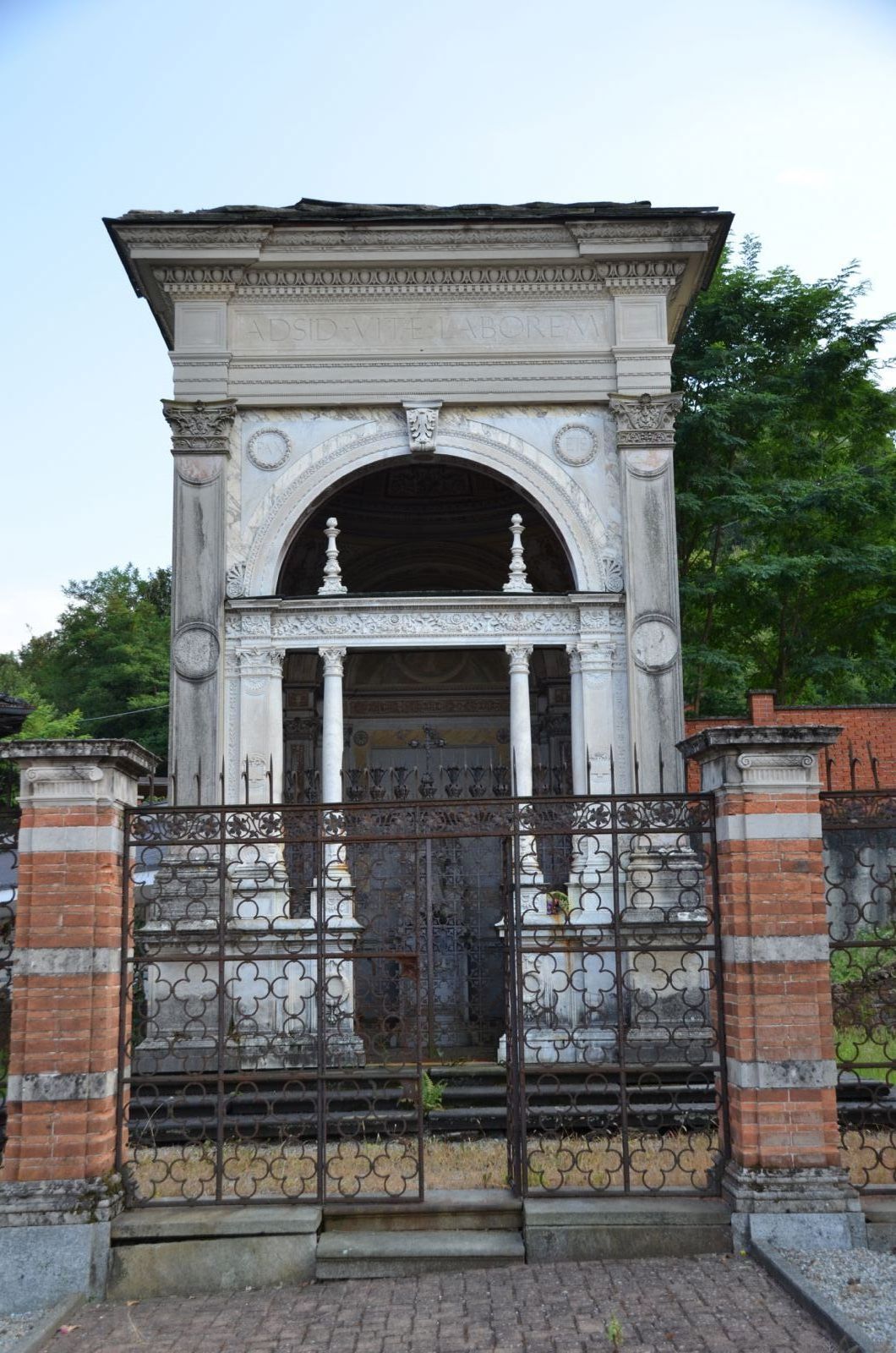 La piccola cappella funeraria si erge in posizione isolata, al termine della lunga scalinata dell’antico accesso monumentale al cimitero, ora chiuso. Un tempo probabilmente la sua posizione doveva risultare privilegiata rispetto al resto del cimitero, circondata da una cancellata in ferro battuto che la isolava dal resto dell’area.